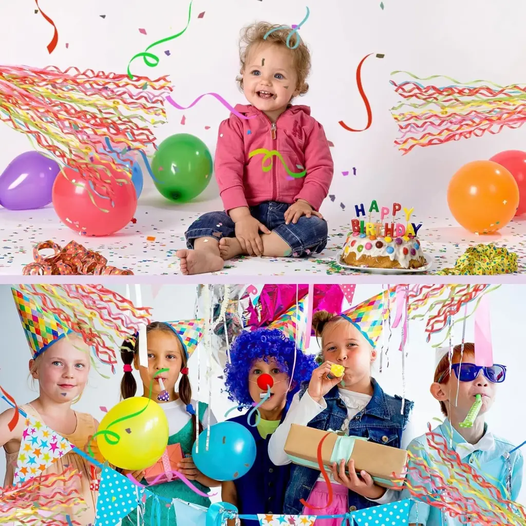 Partilerinize anında enerji katmak ister misiniz? 30 renkli şeritten oluşan bu el atılan konfeti, yaklaşık 5 metreye kadar uzayarak ortama görsel bir şölen kazandırır. Doğum günü, düğün, nişan ve tüm kutlamalar için mükemmel bir parti aksesuarıdır.