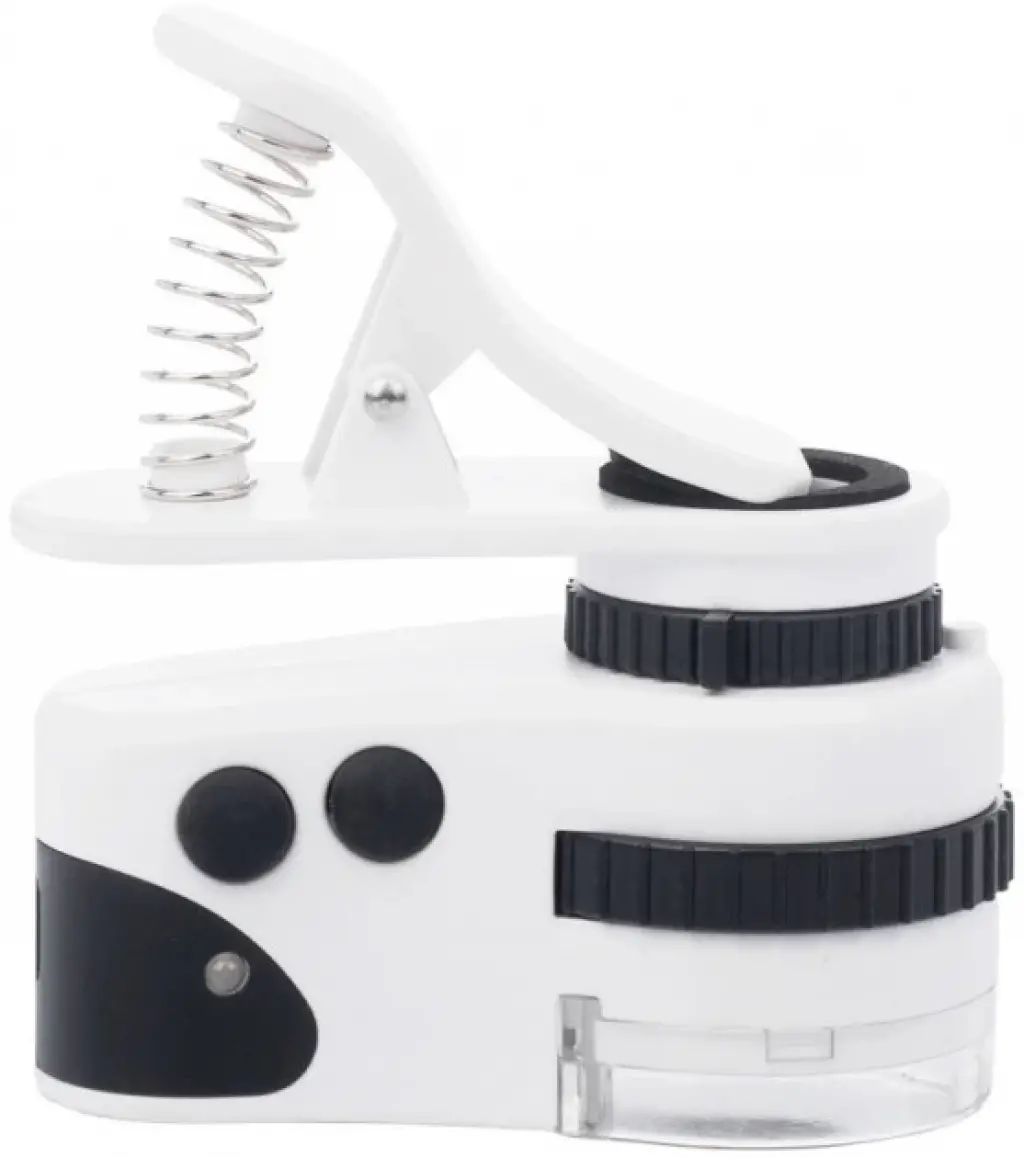 Cep Telefonları için özel  bir mikroskop Mandalı ile Kamera lensine kolayca bağlanabilir.