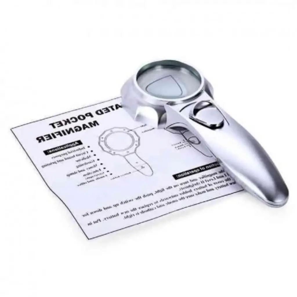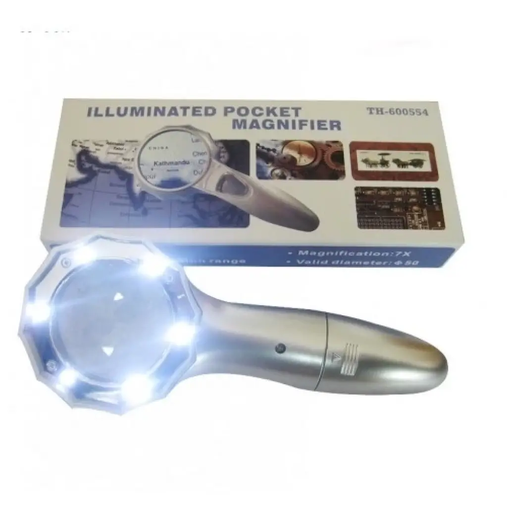 7x Büyüteç 6 Led Işık Aydınlatma 50mm Optik Lens El Büyüteç Harita Gazete Kitap Okuma Yardım Büyüteç