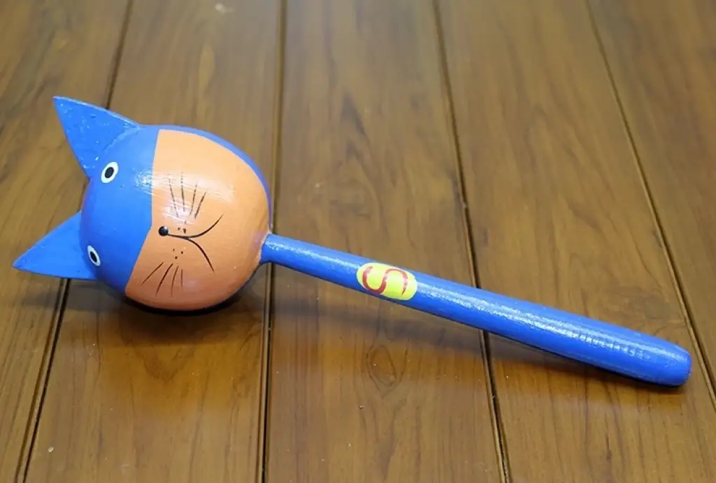 Ahşap Kedili Marakas Tekli Polos:27 Ürün Ölçüleri 25 Cm