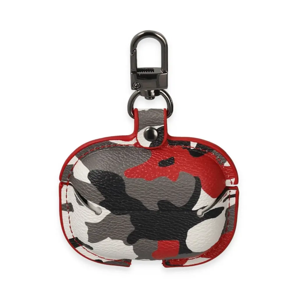 Airpods 3 (3.nesil) Çanta Kamuflaj Deri Kılıf - Kırmızı
