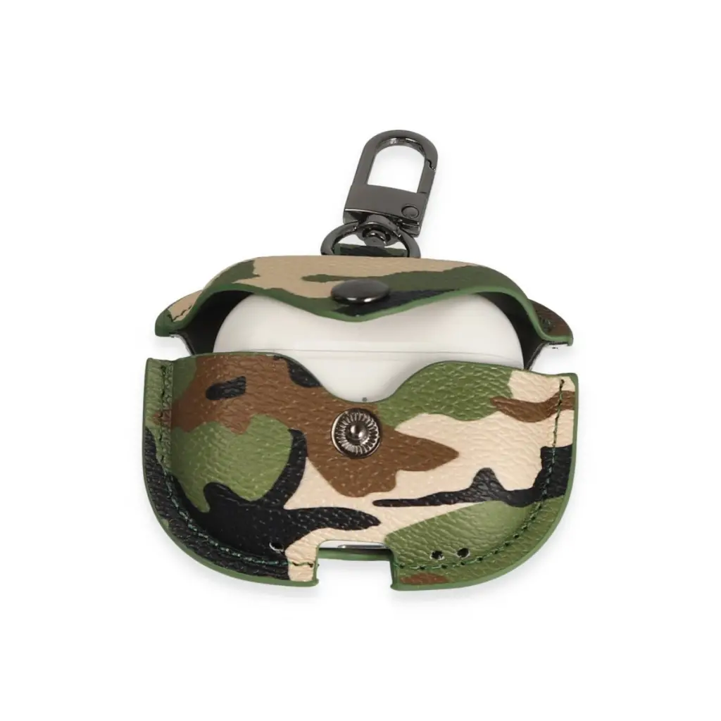 Airpods 3 (3.nesil) Çanta Kamuflaj Deri Kılıf - Yeşil
