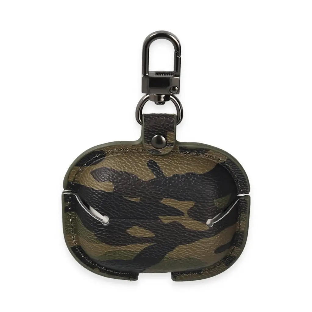 Airpods Pro 2 (2.nesil) Çanta Kamuflaj Deri Kılıf - Haki Yeşil