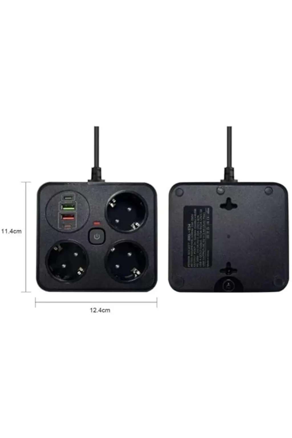 Akım Korumalı Anahtarlı Priz - 3X Priz - 2X Usb - 2X Type-C - 2 mt Kablo Hızlı Şarj Özellikli Siyah