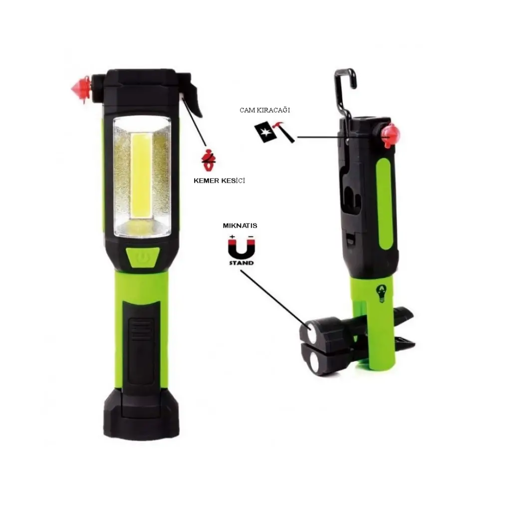 Kullanım Özellikleri   :Mıknatısı ile Sabitlenebilir ,Askısı ile asılabilir ve Masa Üstü Kullanım Özelliği , Oto Tamirinde , Cam Kıracağı Kemer Keseceği Mandallı