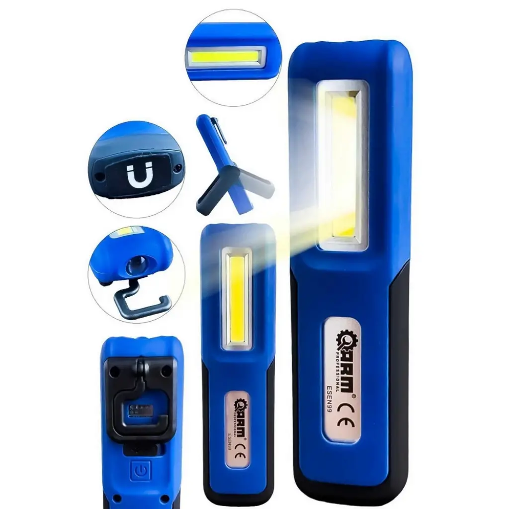 240 LÜMEN ŞARJLI LED LAMBA• Mikro USB Şarj• 240 Lümen Işık Gücü• 180° Döner Başlık• Askılık, Kemerlik, Tek Mıknatıs• 3 Kademeli Işık• Lion Batarya Gücü : 2200MAHMODEL: ESEN99