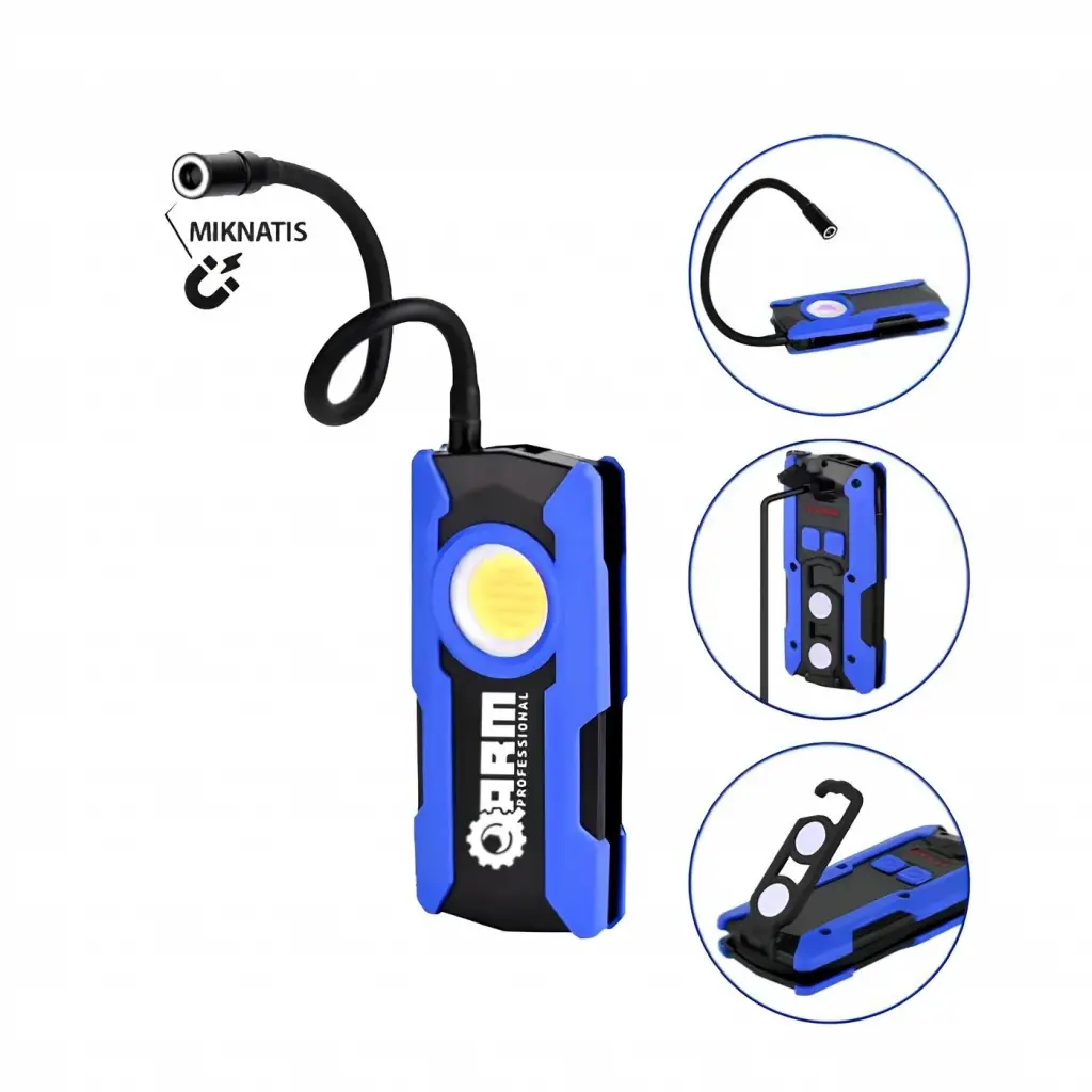 • Farklı Yerlerde Kullanım Alanları: Esnek başlığı, mıknatıs ve askılık gibi özellikleri sayesinde, lambayı dar alanlardan geniş yüzeylere,