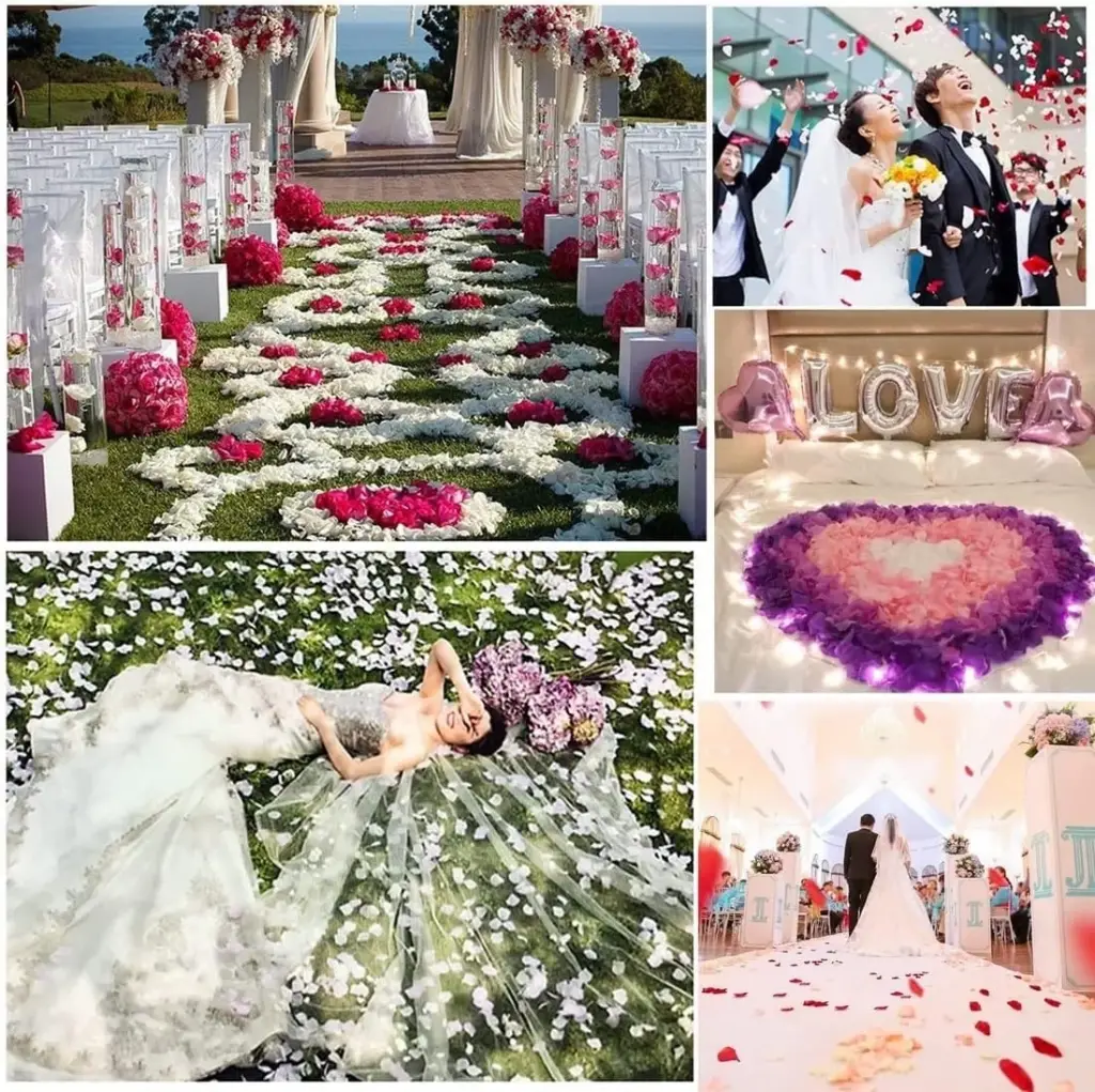 Gerçek gül yaprağı görünümüne sahip bu konfeti, masa süslemelerinden gelin yoluna, hediye lerinden fotoğraf çekim alanlarına kadar farklı kullanım alanlarında şık bir atmosfer oluşturur.