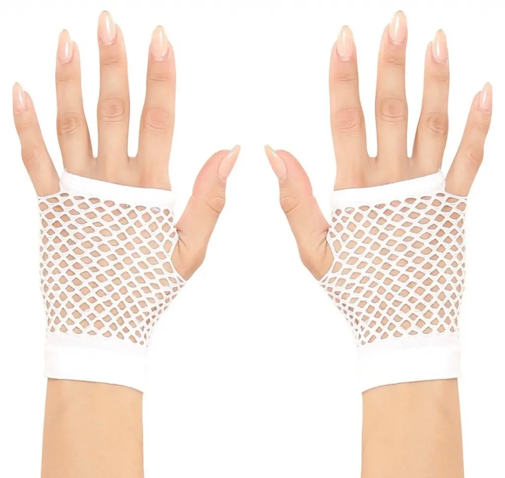 Karnaval ve cadılar bayramı kostümünüze bir dokunuş katacak kısa beyaz örgü eldivenler | Görünümünüzü bu 11 cm beyaz örgü eldivenlerle tamamlayın