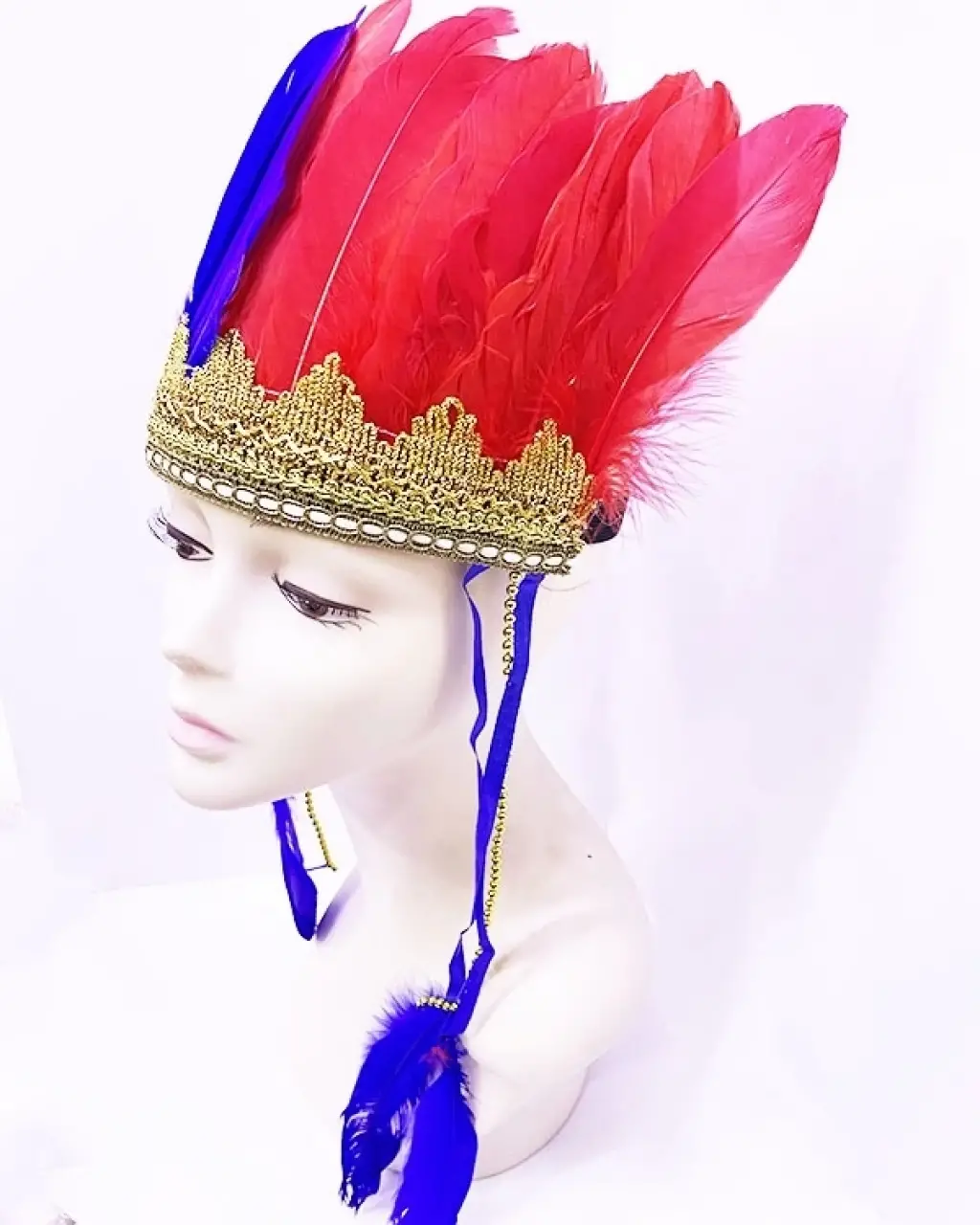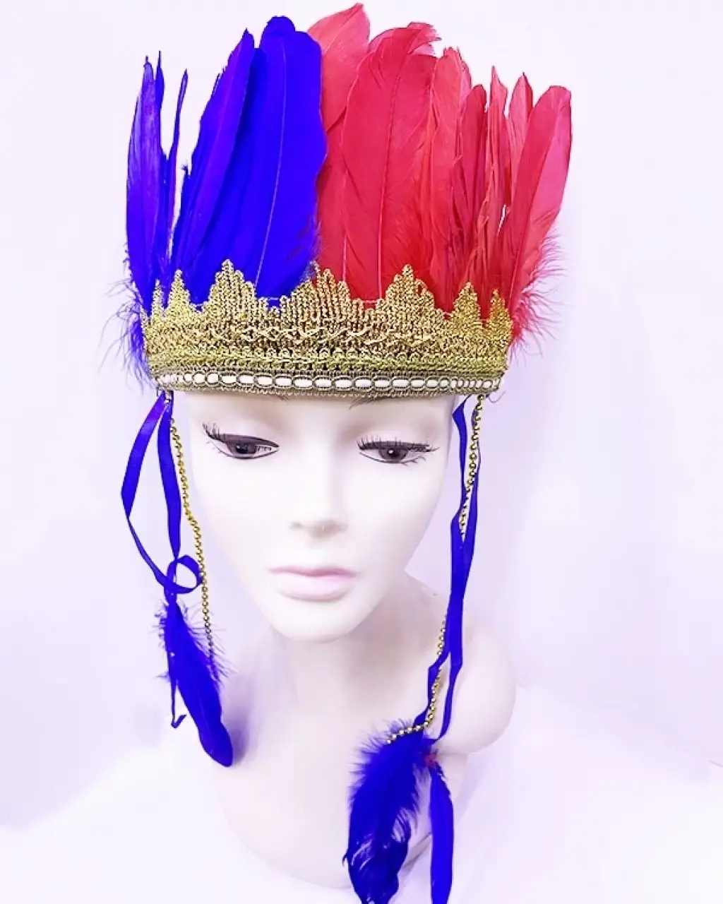 Bordo Mavi Renk Tüylü Kızılderili Başlığı | Taraftar Başlığı