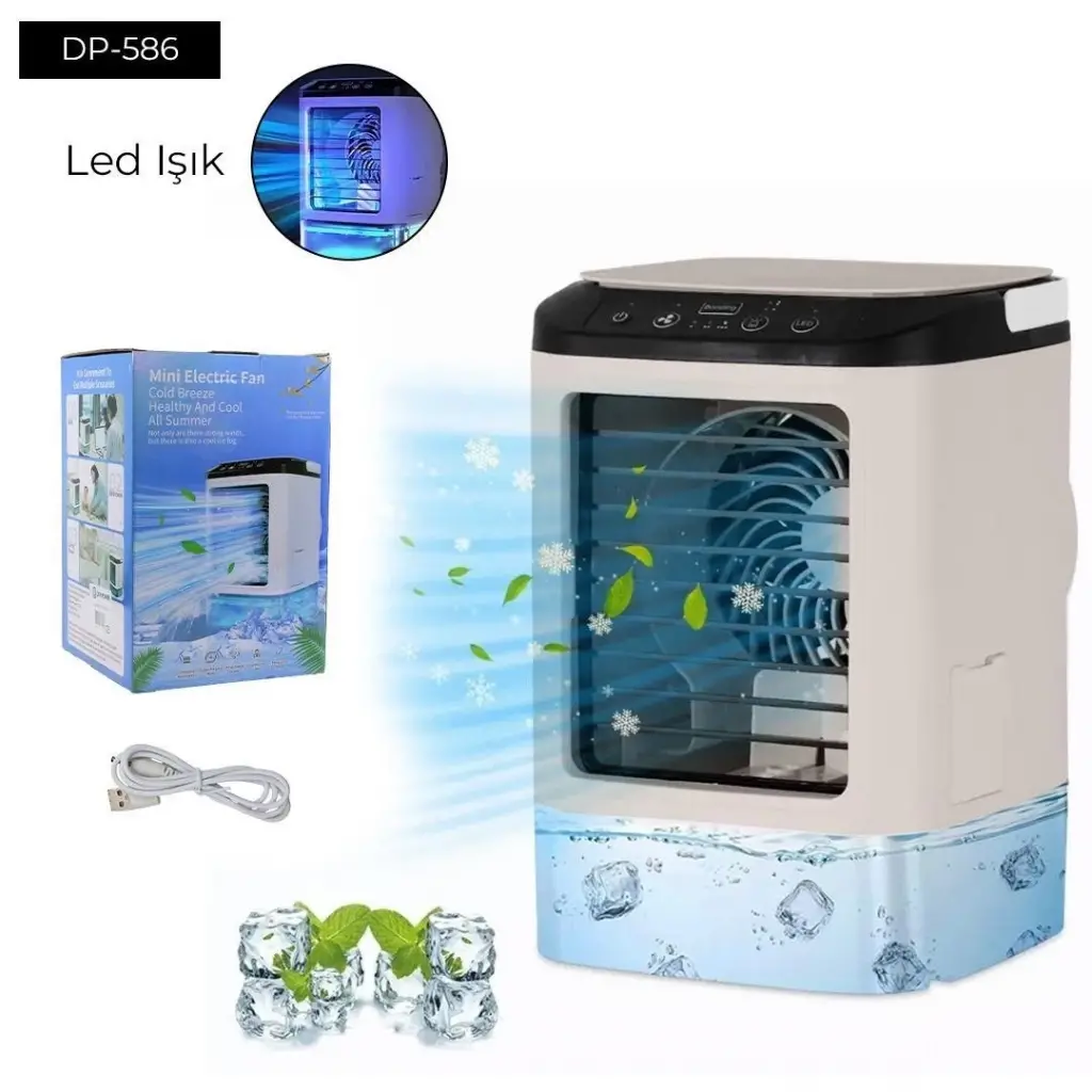Masaüstü Dijital Ekranlı Çift Fanlı Led Işıklı Soğutucu Fan Ev Ofis Şarjlı Vantilatör