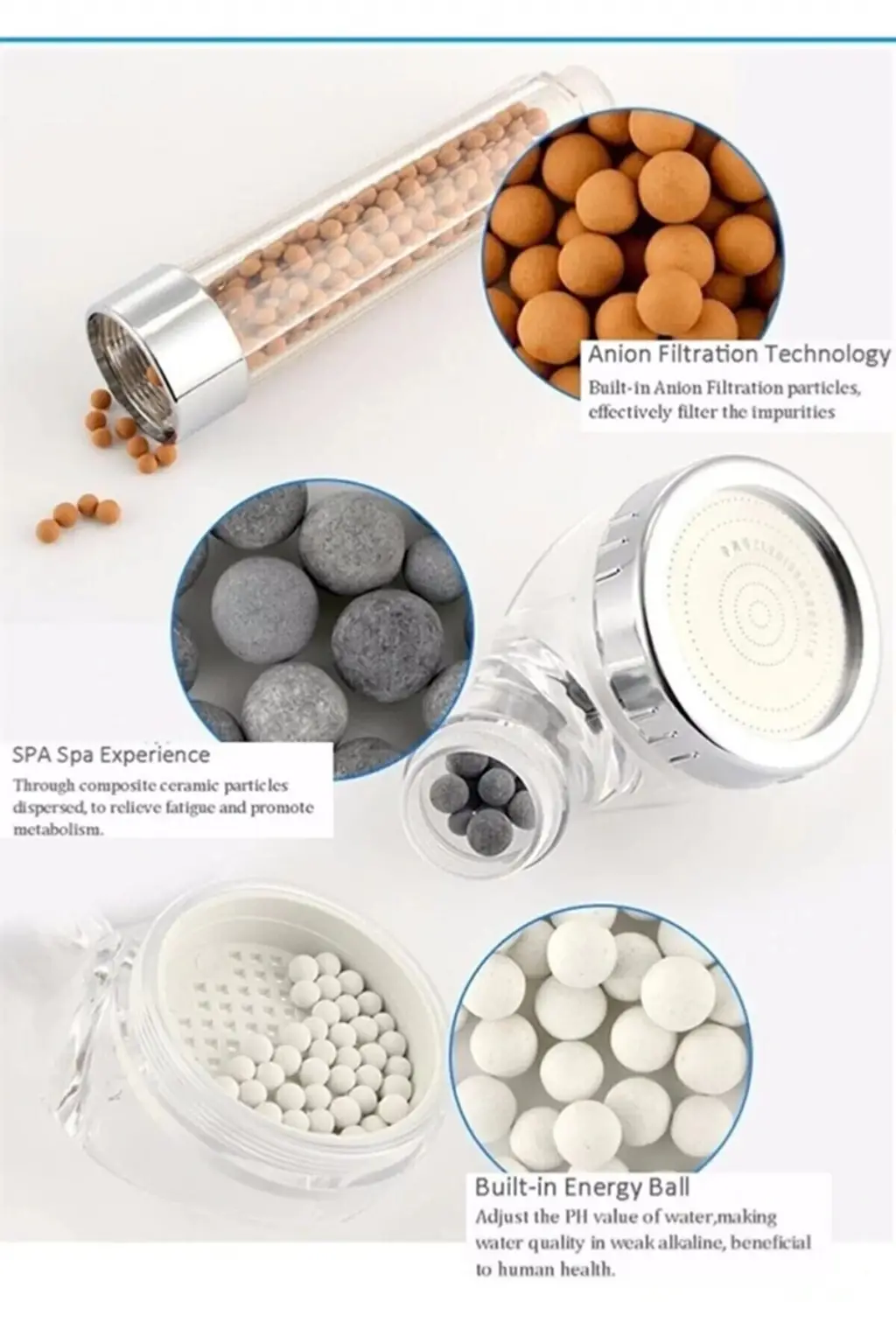 Filtreli ve Su Tasarruflu Arıtmalı Duş Başlığı Seti Boncuklu Başlık Hortum ve Mafsal Set