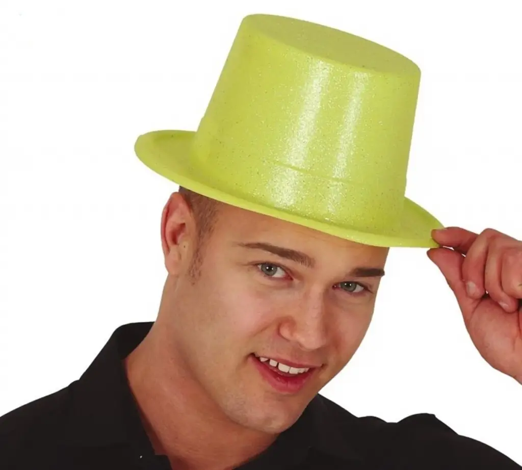 Floresan Sarı Renk Simli Uzun Fötr Melon Şapka ile: