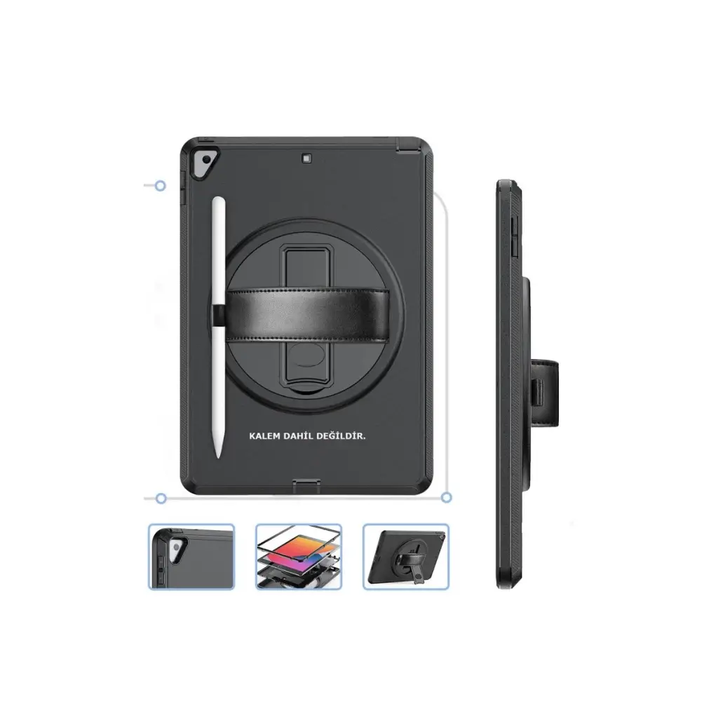 İpad 10.2 (7.nesil) Kılıf Hand Strap Tablet Kılıfı - Siyah