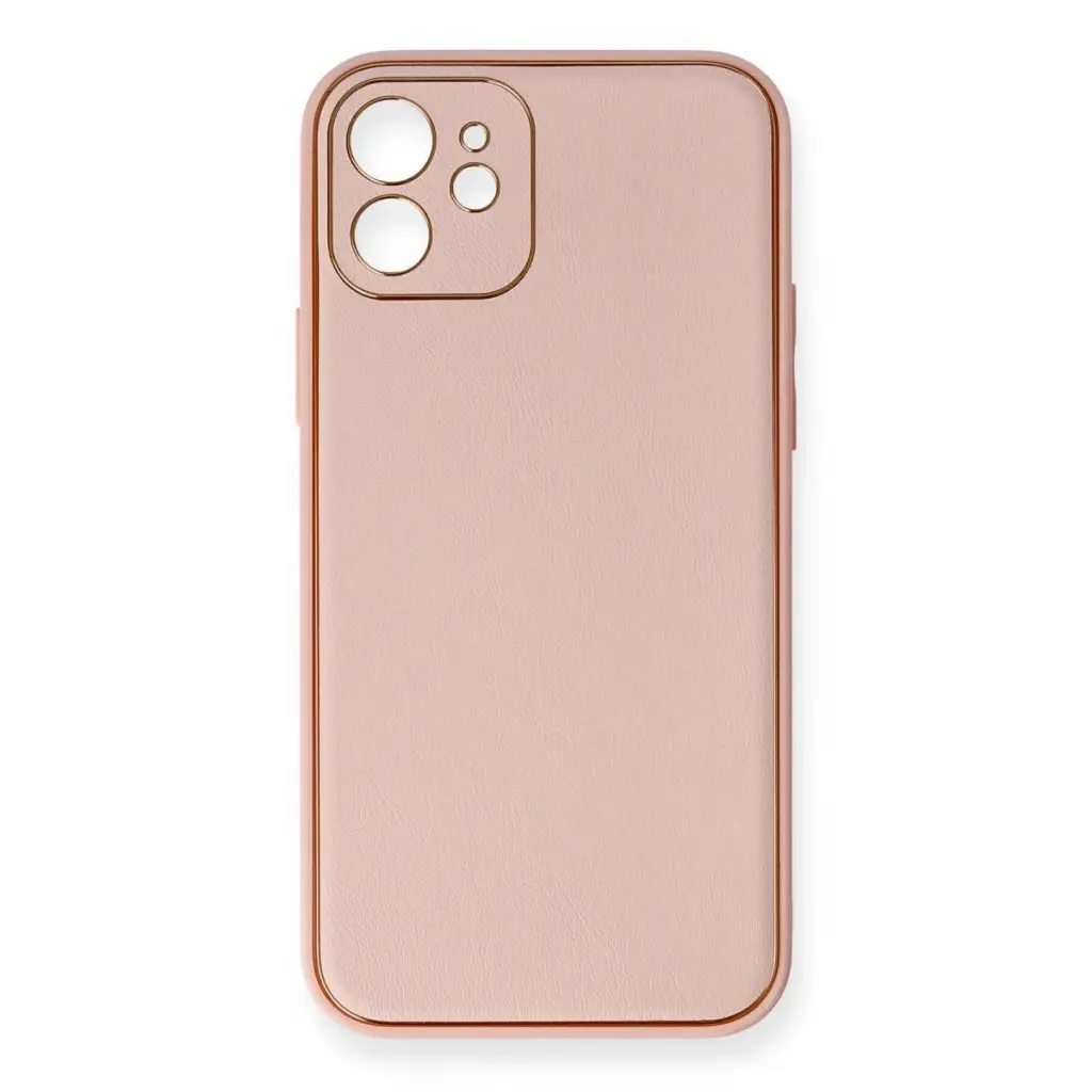İphone 12 Kılıf Coco Deri Silikon Kapak - Pembe