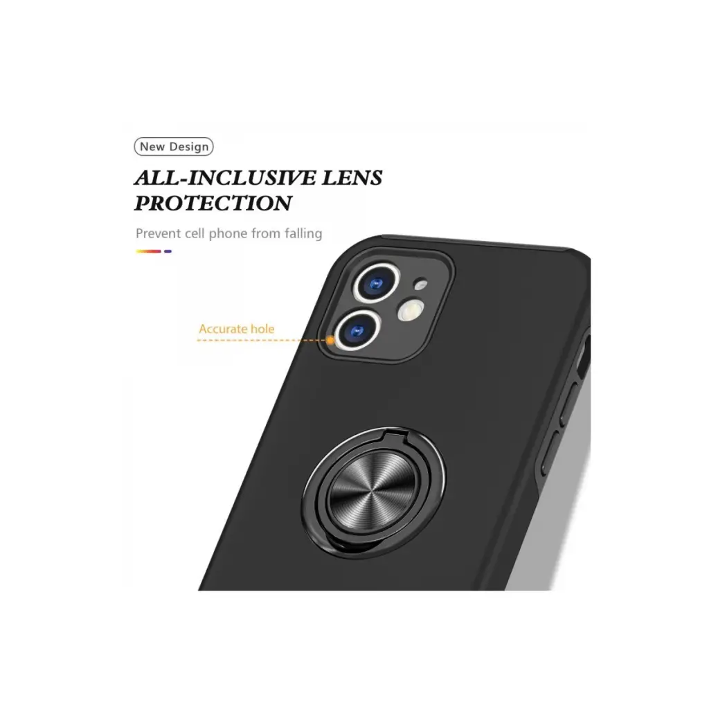 İphone 12 Kılıf Elit Yüzüklü Kapak - Siyah