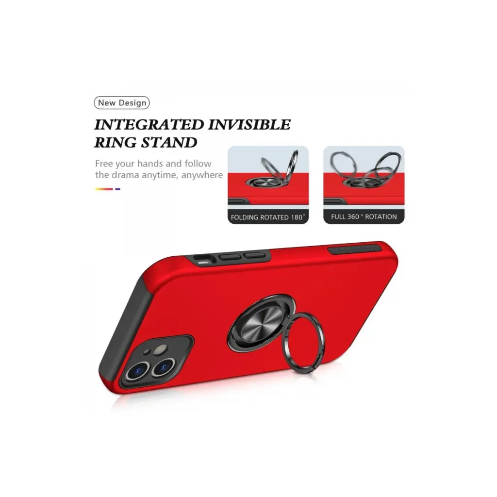 İphone 12 Mini Kılıf Elit Yüzüklü Kapak - Kırmızı
