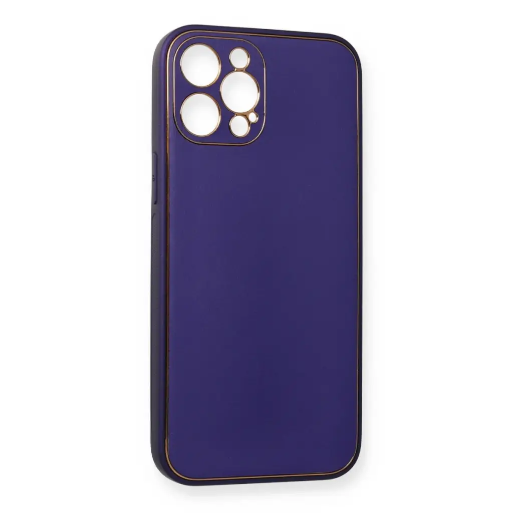 İphone 12 Pro Kılıf Coco Deri Silikon Kapak - Mor