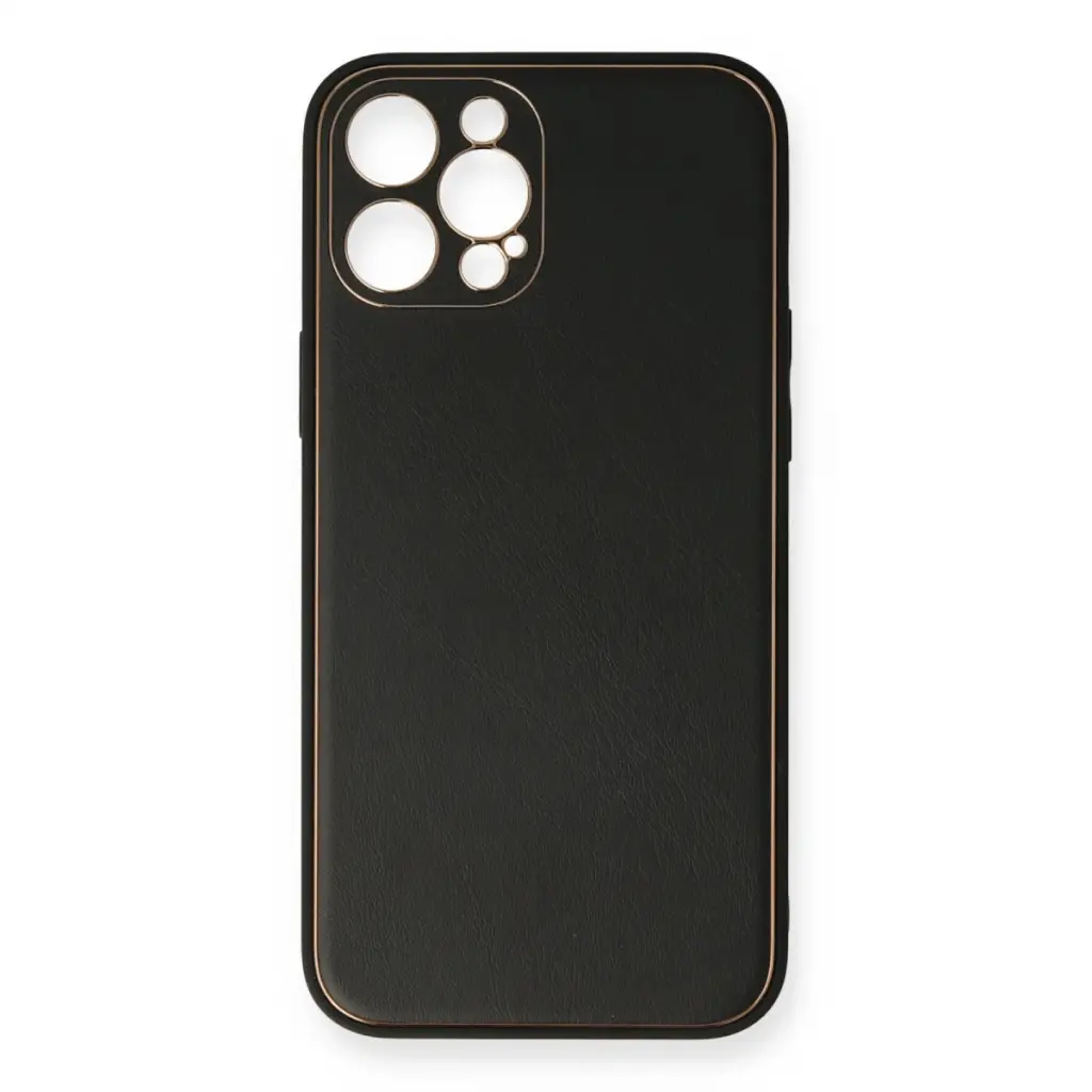 İphone 12 Pro Kılıf Coco Deri Silikon Kapak - Siyah