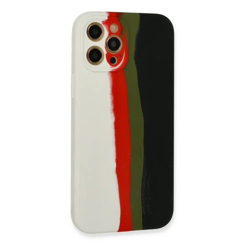 İphone 12 Pro Kılıf Ebruli Lansman Silikon - Beyaz-siyah