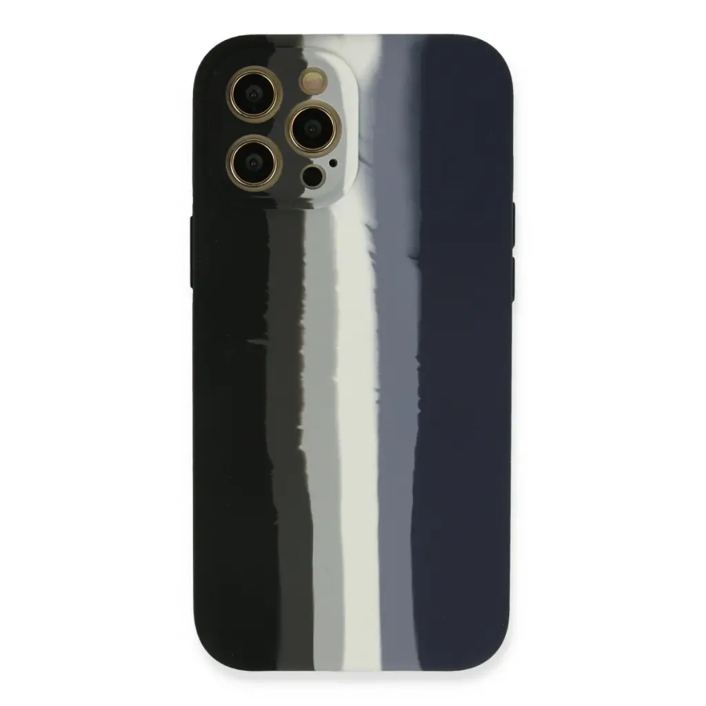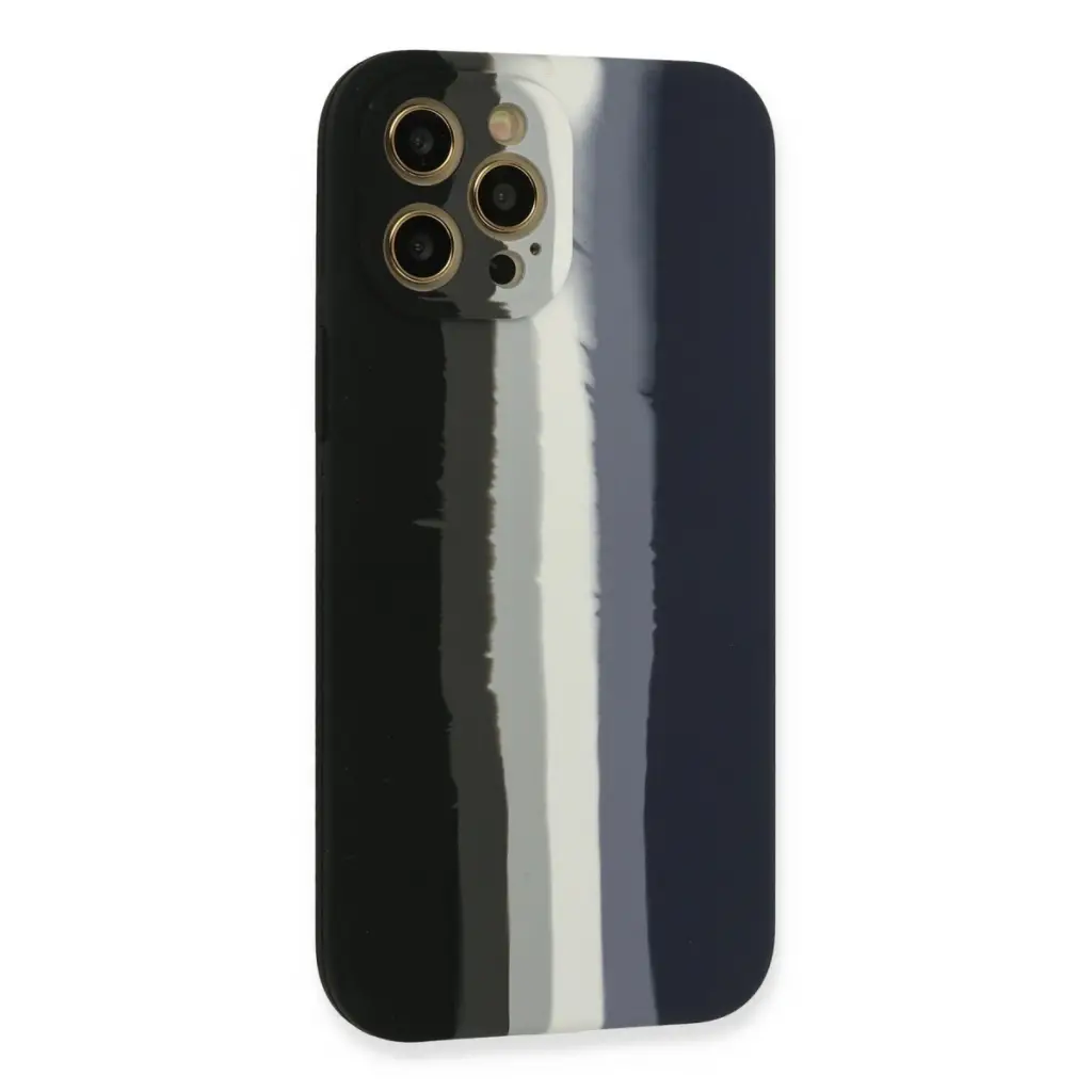 İphone 12 Pro Max Kılıf Ebruli Lansman Silikon - Siyah-lacivert