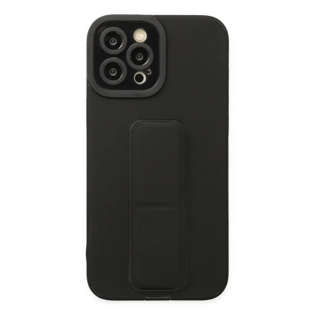 İphone 12 Pro Max Kılıf Mega Standlı Silikon - Siyah