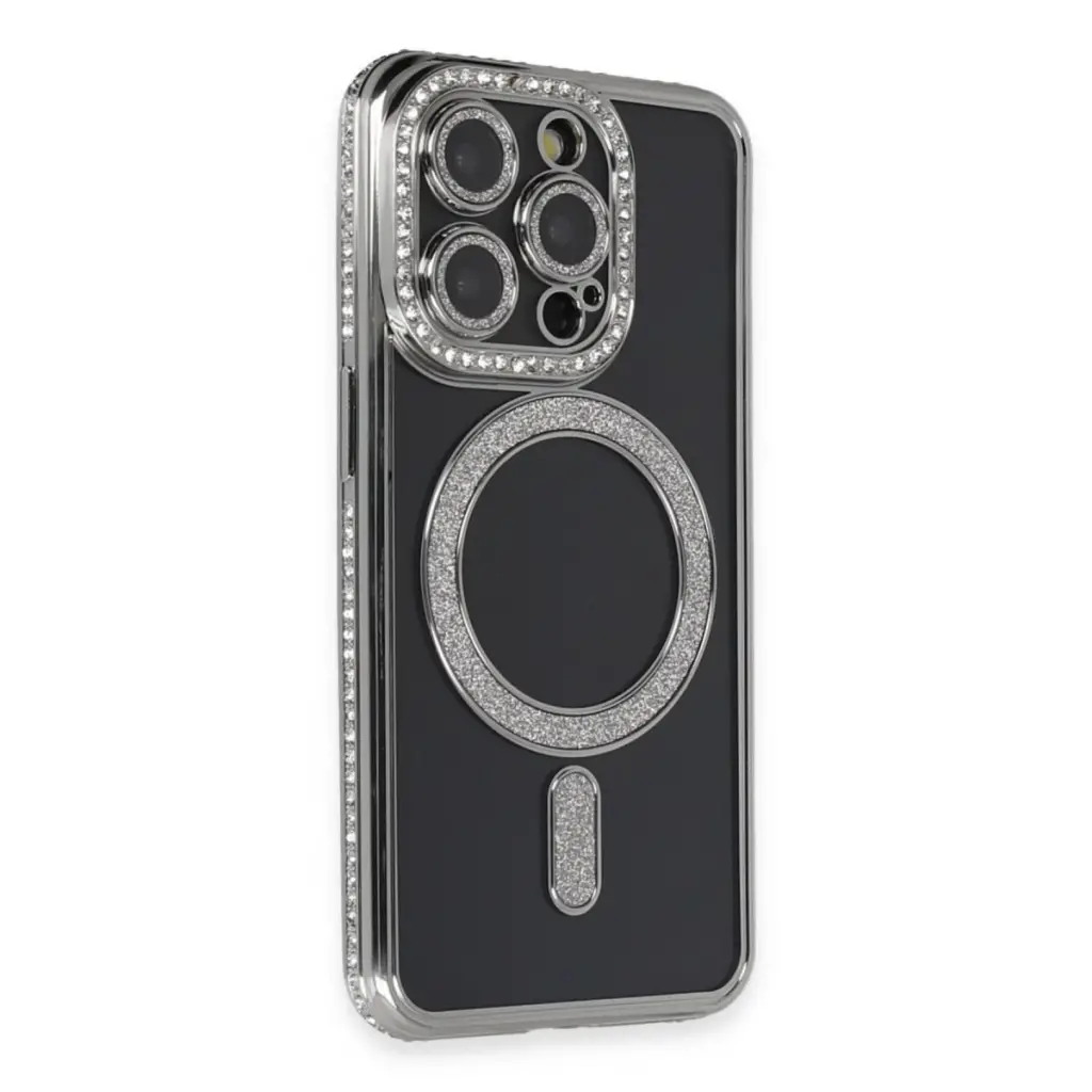 İphone 14 Pro Max Kılıf Joke Simli Magneticsafe Kılıf - Gri