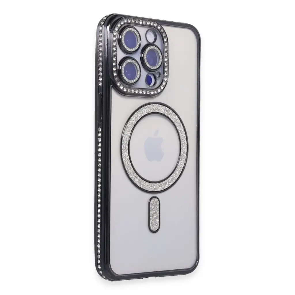 İphone 15 Pro Max Kılıf Joke Simli Magneticsafe Kılıf - Siyah