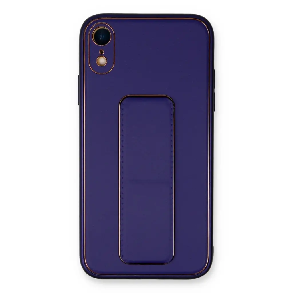 İphone Xr Kılıf Coco Deri Standlı Kapak - Mor