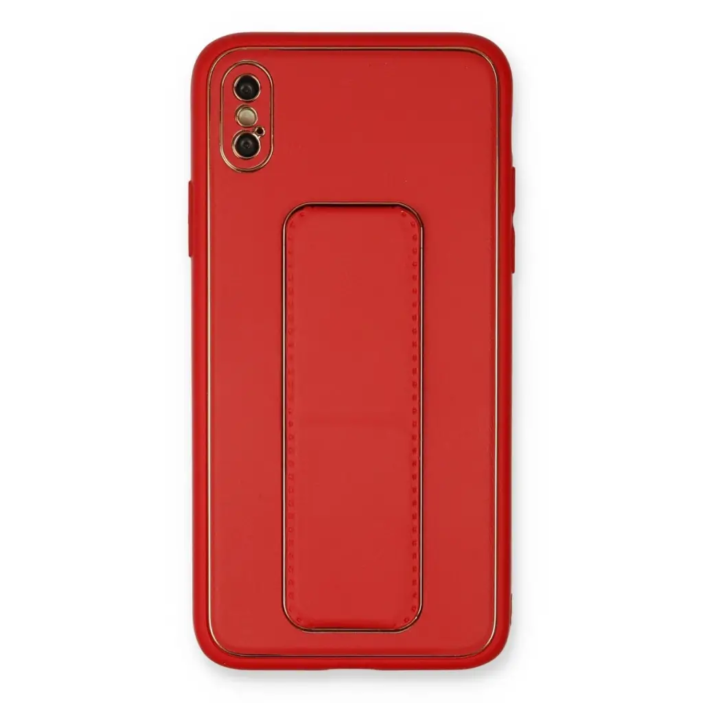 İphone Xs Max Kılıf Coco Deri Standlı Kapak - Kırmızı