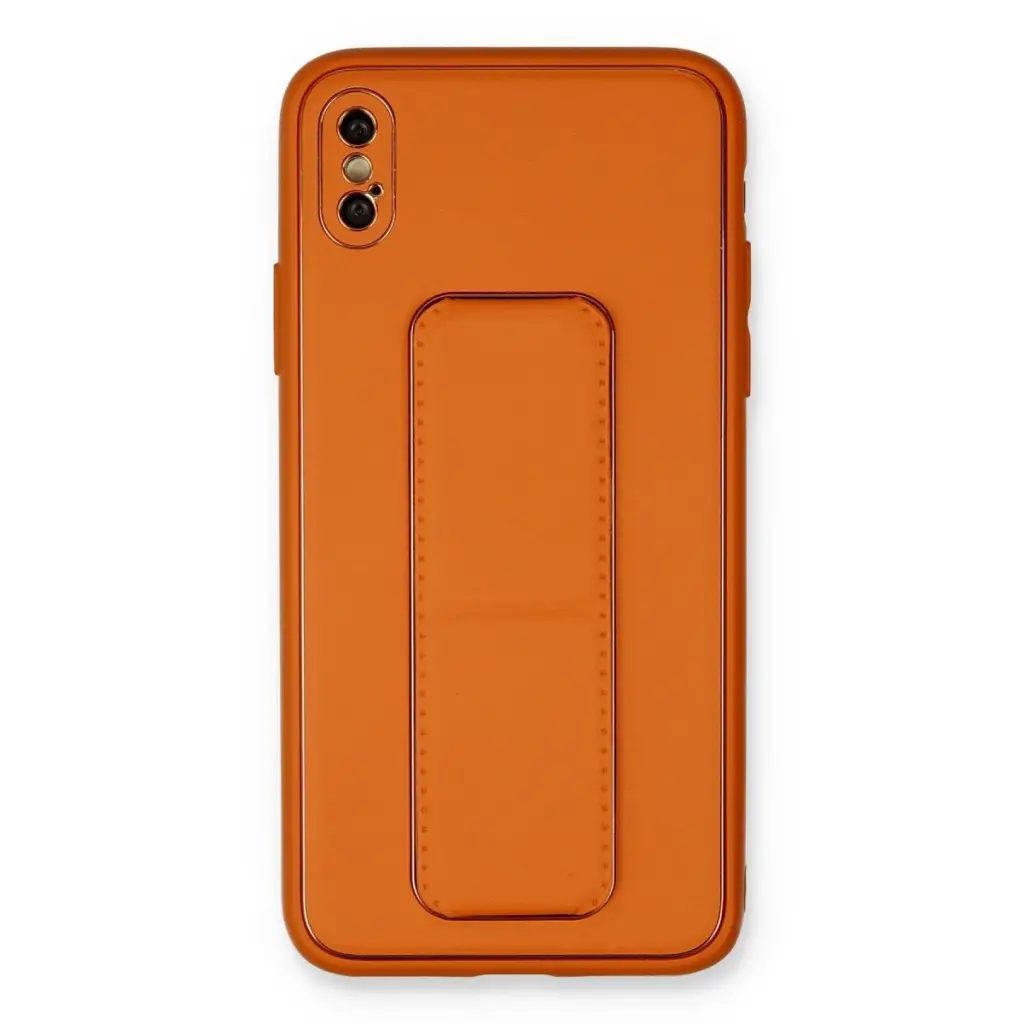 İphone Xs Max Kılıf Coco Deri Standlı Kapak - Turuncu