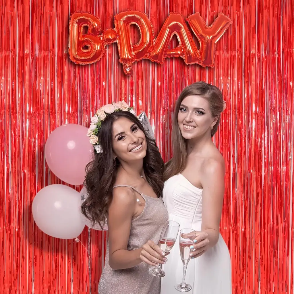 Kırmızı renk ekstra metalize parlak saçaklı arka fon perdesi ile özel günlerinize ve kutlamalarınıza göz kamaştırıcı bir ışıltı katın İthal A kalite malzemeden üretilen bu perde, 1x2 metre boyutuyla her türlü dekorasyona uyum sağlar.