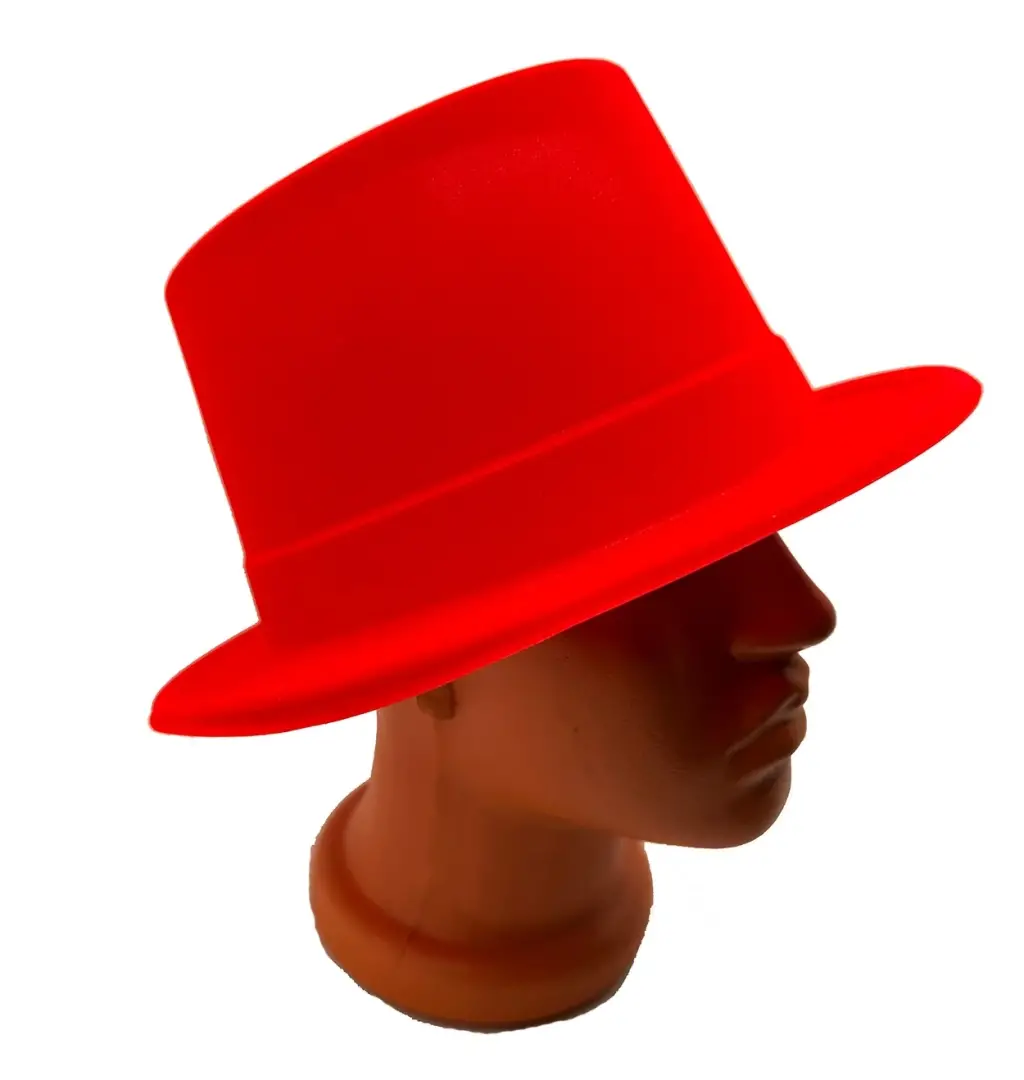 Kırmızı Renk Plastik Nubuk Kadife Kaplama Fötr Şapka
