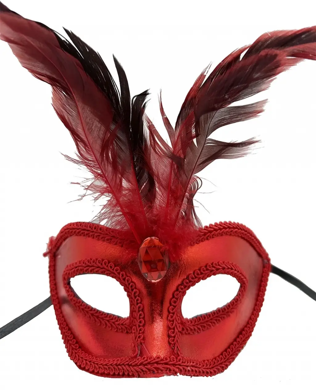 Kırmızı Rugan Kaplama Kırmızı Tüylü Parti Maskesi ile şık ve göz alıcı bir görünüm oluşturun ve özel günlerinizi unutulmaz kılın
