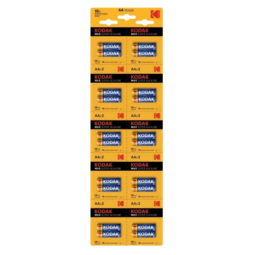 Ürün Açıklama : Kodak 20 Adet Max Super Alkalin 2’li Ayrılabilir Kartela Kalem Pil