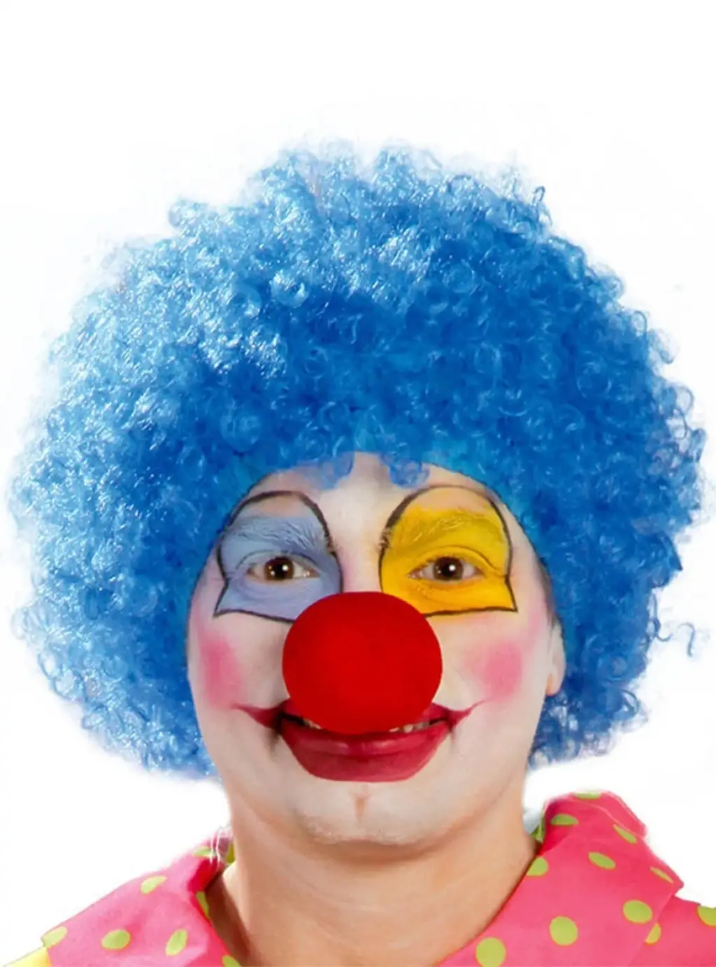Mavi Renk Kıvırcık Afro Bonus Peruk Takma Saç Ve Kırmızı Burun Seti
