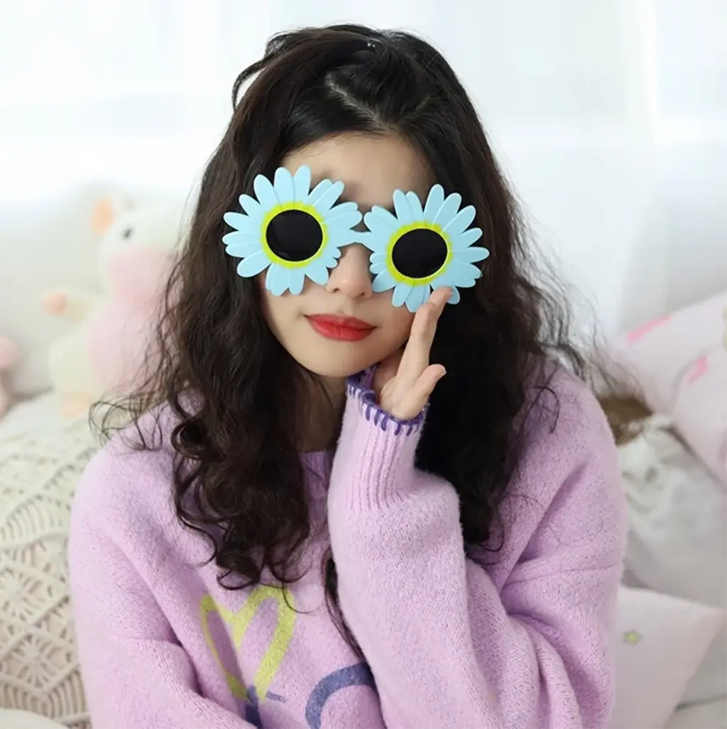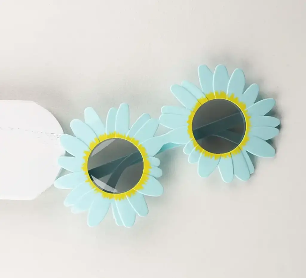 Mavi Renk Papatya Şekilli Parti Gözlüğü 18x10 cm, doğum günü partileri, bahar partileri ve diğer eğlenceli kutlamalar için mükemmel bir aksesuar. Gözlükler yumuşak plastikten yapılmıştır ve her yaştan insan için uygundur. Papatya şeklindeki çerçeve, her kıyafete sevimli ve şenlikli bir hava katacaktır.