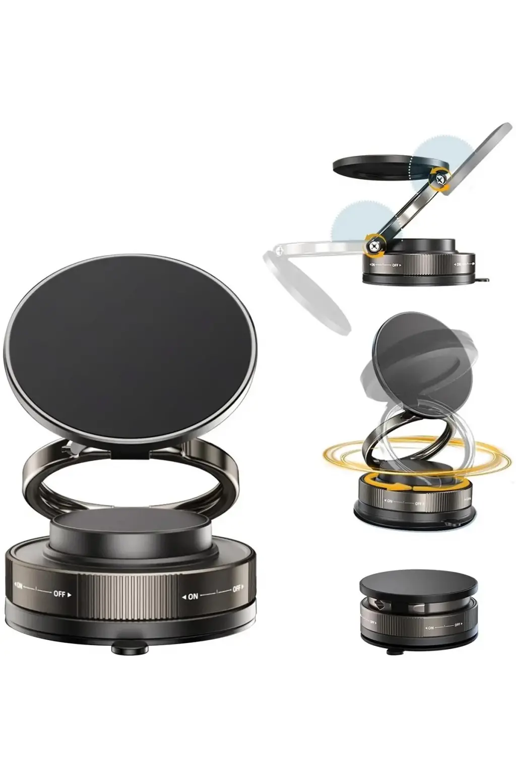 güçlü vakum özelliğiyle dikkat çeken, modern ve kompakt bir telefon tutucudur.