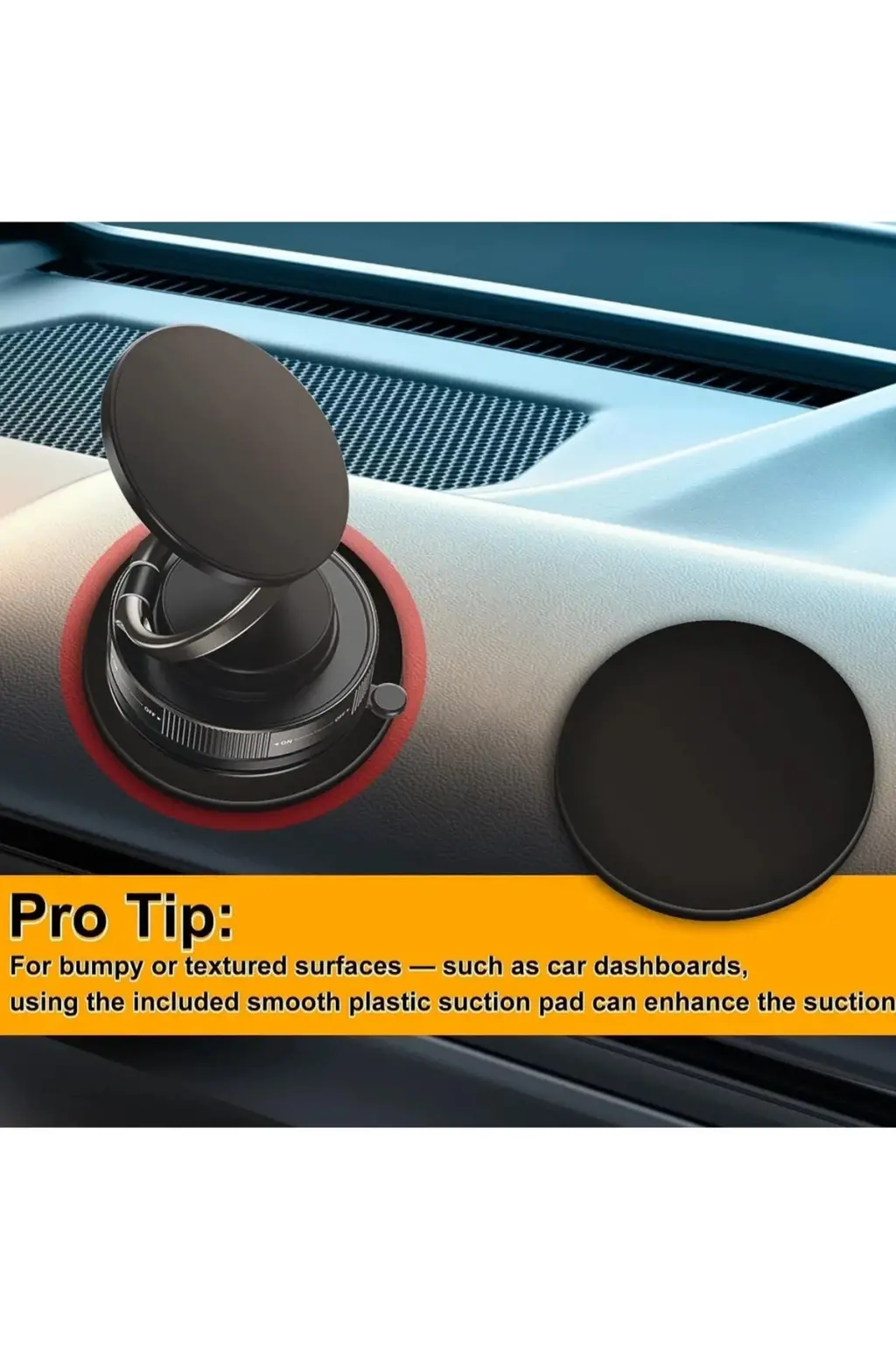 Vakum tabanı sayesinde yüzeylere sağlam bir şekilde yapışarak sabit bir kullanım sağlar.