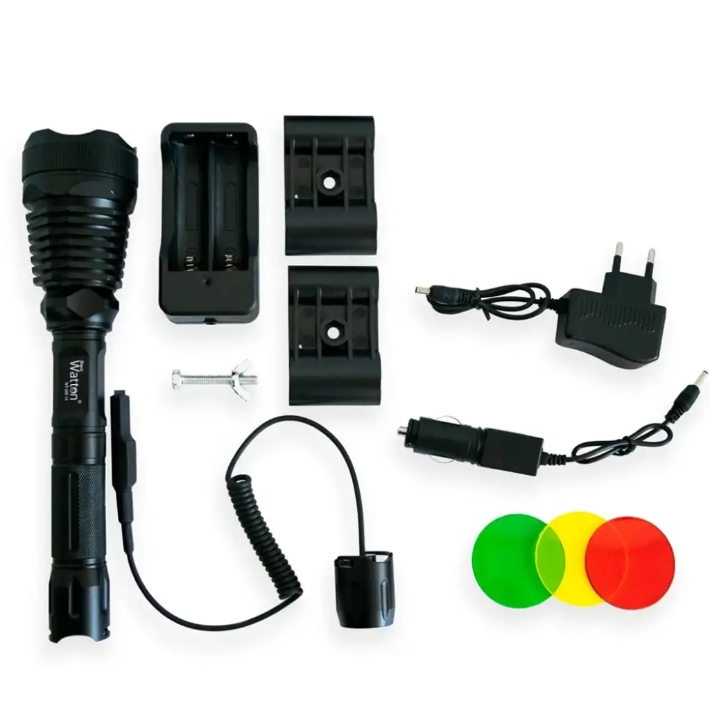 oluyor. Avcılık sırasında da kullanılan sarı ışık (gün ışığı) özellikle sisli, puslu ve dumanlı havalarda çok daha iyi görme şansı yaratıyor. 800 Lümen ışık gücüyle performans devleri, mükemmel bir aydınlatma mesafesinin yanısıra görüş mesafesini de daha geniş biçimde aydınlatmaktadır. Elde ya da aparatı sayesinde nize takabilirsiniz. Gövde malzemesi alimünyum metal olduğu için yağmur suyuna ve darbelere karşı dayanıklıdır. Tek modda çalışmakta olan WT-205  800 lümen ışık gücü ve geniş açısı ile 250-300 metre mesafeyi aydınlatarak avınızın vazgeçilmezi olacaktır. Oto şarj kablosu ile dilerseniz aracınızdada şarj edebilirsiniz.