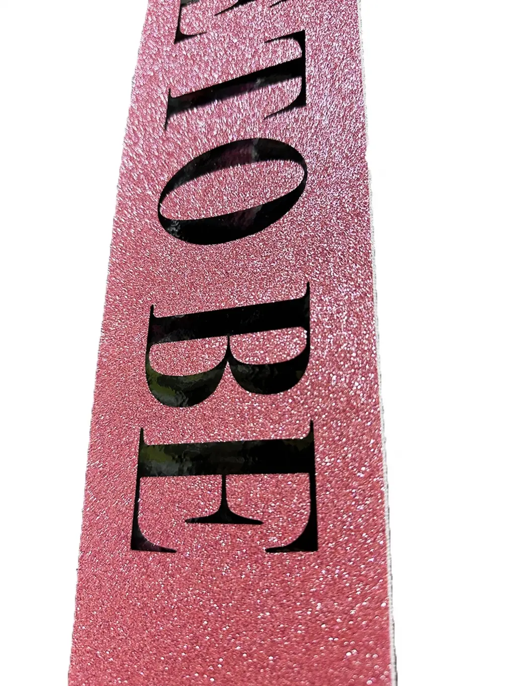 Pembe Üzeri Siyah Kalın "Bride To Be" Yazılı Simli Işıltılı Kuşak Kemer 10x80 cm