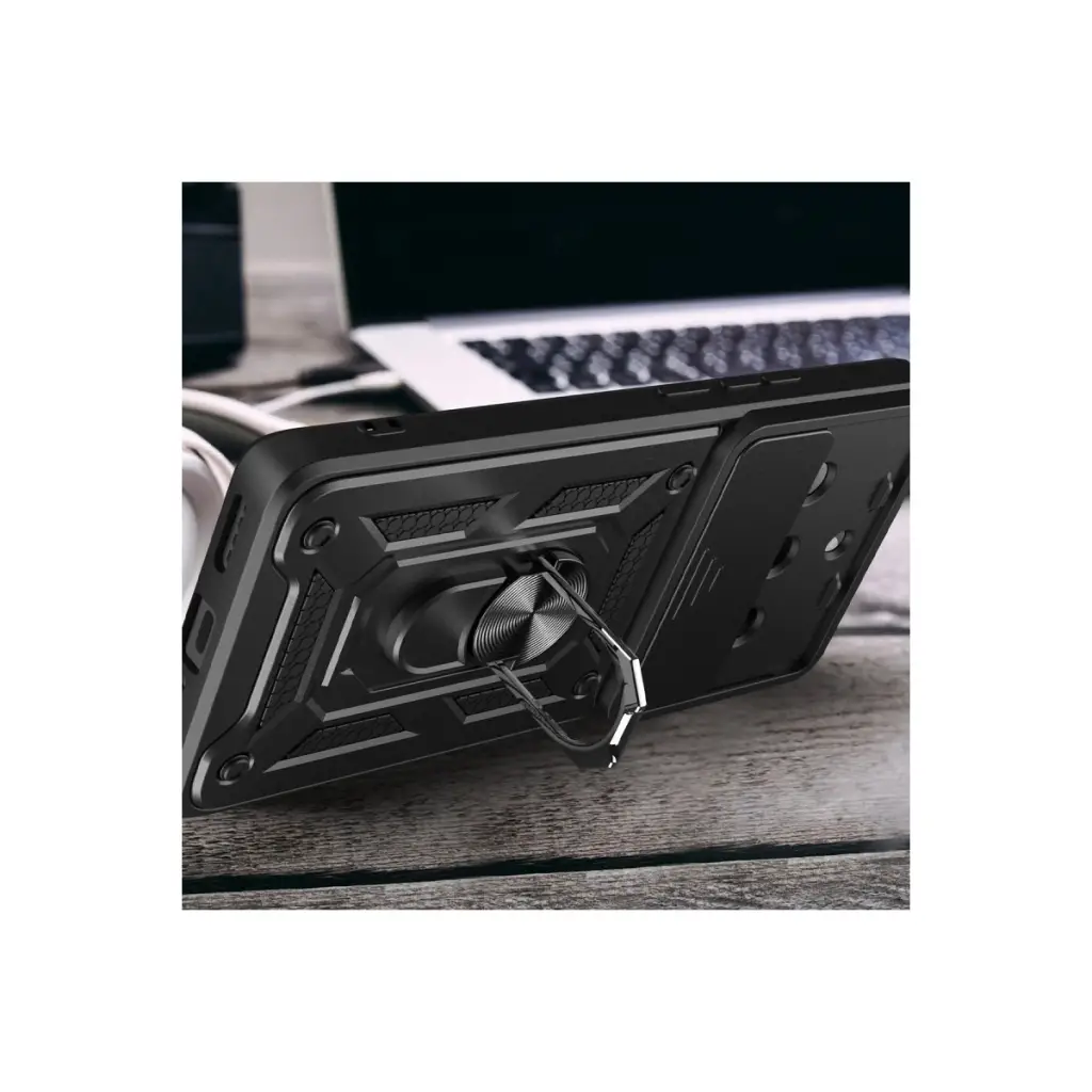 Kılıfın arka kısmında yer alan entegre metal halka hem tutucu hem de stand olarak işlev görür. Eller serbest video izleme, içerik görüntüleme ya da masaüstü kullanımı için idealdir.