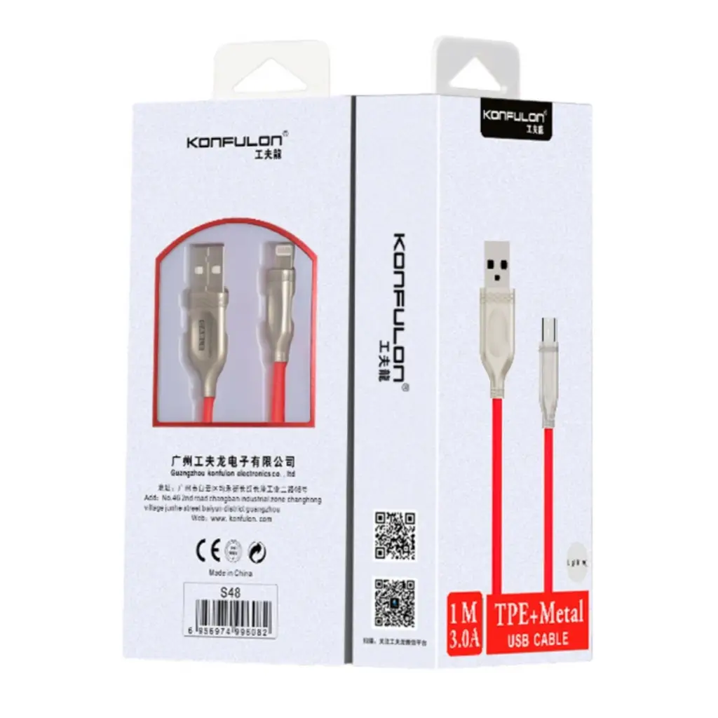 S48 Lightning Kablo metal uçlu ve dayanıklı plastik (pvc) kablo yapısı ile öne çıkmaktadır. Zorlu koşullarda sizi yarı yolda bırakmaz. Yüksek hızlı şarj ve data transferi imkanı sunan S48 tüm cihazları ile uyumludur.