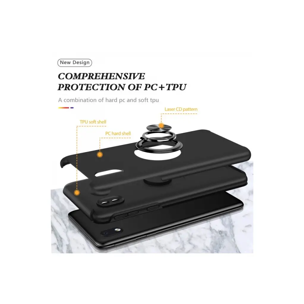 Samsung Galaxy A01 Core Kılıf Elit Yüzüklü Kapak - Siyah