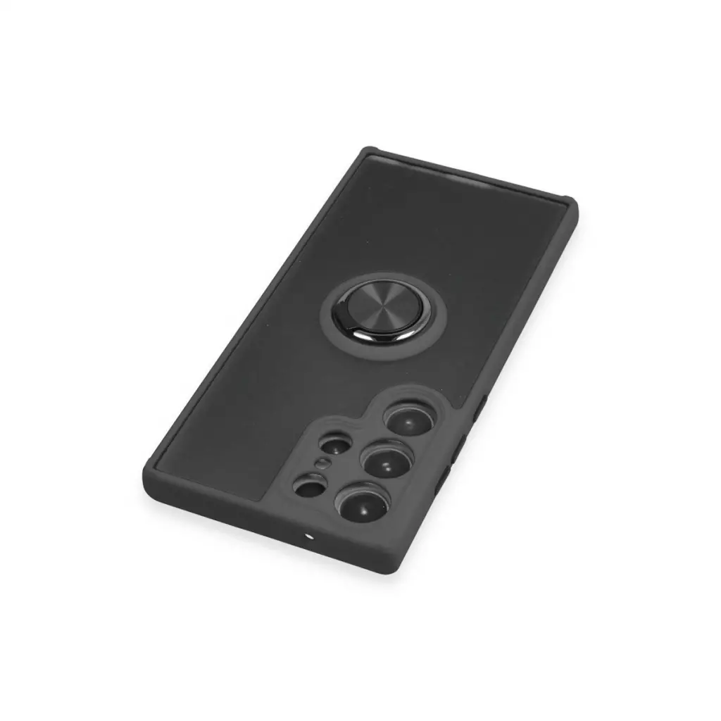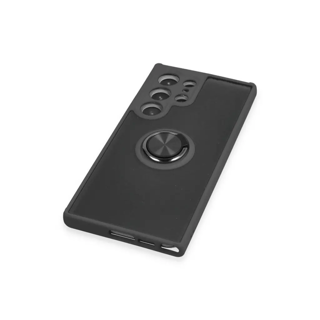 Samsung Galaxy S23 Ultra Kılıf Montreal Yüzüklü Silikon Kapak - Siyah