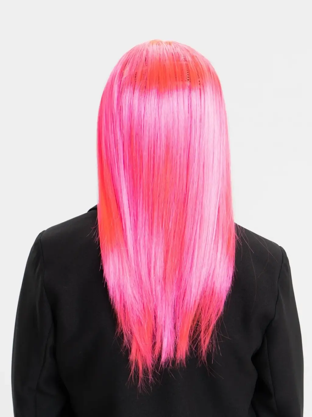 Şeker Pembesi Koyu Pembe Renk Uzun Düz Parti Peruğu
