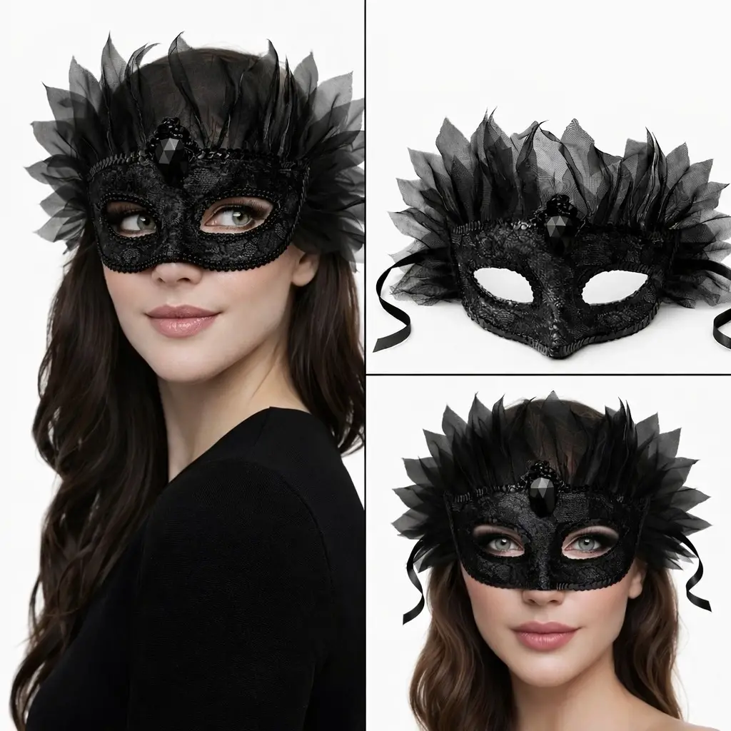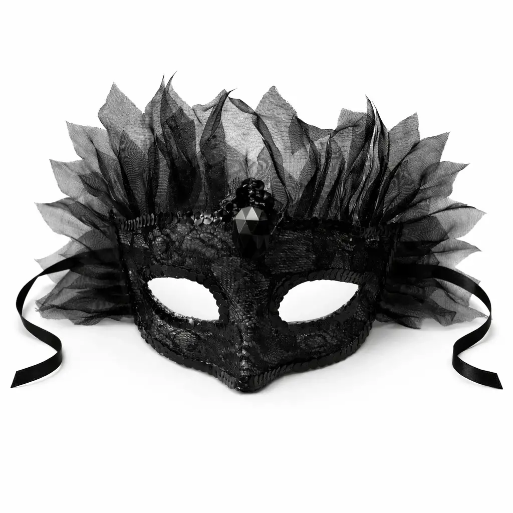 Gizemli ve zarif bir görünüm için tasarlanan siyah taşlı tüllü Venedik maskesi, özel davetlerinizde stilinizi ön plana çıkarır. Ön kısmındaki büyük taş detayı ve etrafındaki yoğun tül saçak tasarımı ile premium bir görünüm sunar.