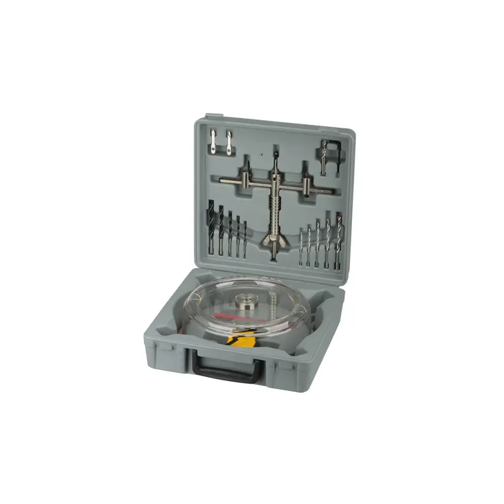Özetle, Vantuzlu Ayarlı Panç Sistemi 40-200 mm, çeşitli malzemelerde delik açma işlemlerini kolaylaştıran profesyonel bir araçtır. Dayanıklı yapısı, ayarlanabilir özellikleri ve pratik taşıma çantası ile birçok alanda kullanılabilir.