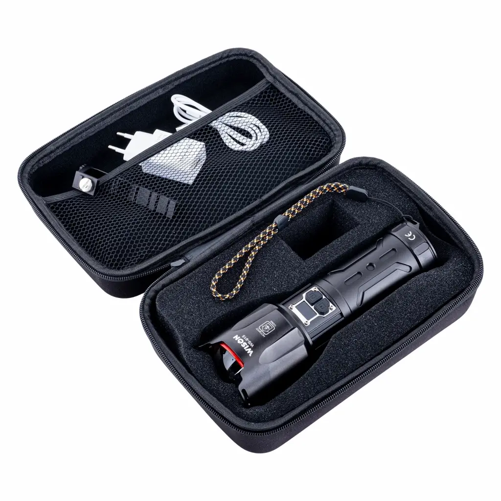 Profesyonel kullanım için tasarlanmış Wison Zoomlu Şarjlı Avcı El Feneri, üstün aydınlatma kapasitesi ve dayanıklı metal gövdesiyle öne çıkan bir üründür. 55W ışık çıkışı ve 5000 lümen parlaklığı sayesinde, en kaProfesyonel kullanım için tasarlanmış Wison Zoomlu Şarjlı Taktik El Feneri, üstün aydınlatma kapasitesi ve dayanıklı metal gövdesiyle öne çıkan bir üründür. 55W ışık çıkışı ve 5000 lümen parlaklığı sayesinde, en karanlık ortamlarda bile maksimum görüş sağlar.
