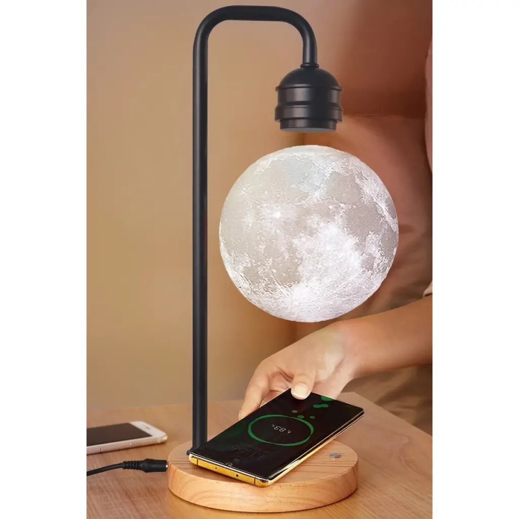 Xf02 Ay Görünümlü Kablosuz Şarj Özellikli Gece Lambası - Siyah